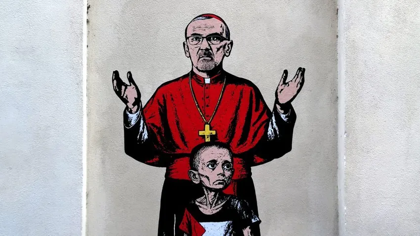 La imagen habla por sí sola. El patriarca de Jerusalén, Pier Battista Pizzaballa, revestido con los ornamentos cardenalicios, alza los brazos y la mirada al cielo. Junto a él, un 'niño del hambre' de Gaza, uno de tantos en este genocidio. Desnutrido, con la mirada perdida, triste, y una olla vacía en sus manos. Subido en un montículo... de calaveras, símbolo de tantos muertos en esta masacre, que a punto está de cumplir dos años.