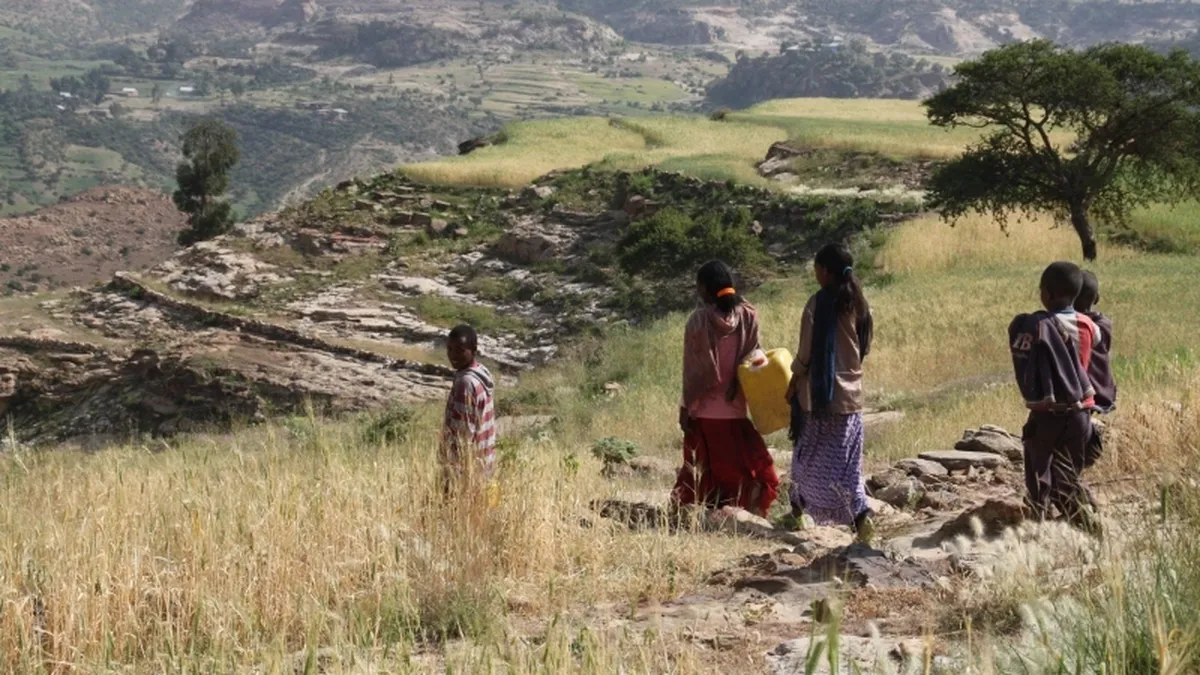 La vuelta, sin embargo, es otra historia. Subir la cuesta empinada con el gran bidón amarillo lleno de agua sobre la espalda deja de parecer un juego. El peso es enorme y la responsabilidad, mayor. Abeba procura no derramar ni una gota para evitar regresar a la fuente antes de que anochezca. Los días en que su hermano Kubrom la ayuda con el borrico se convierten para ella en casi una celebración.
