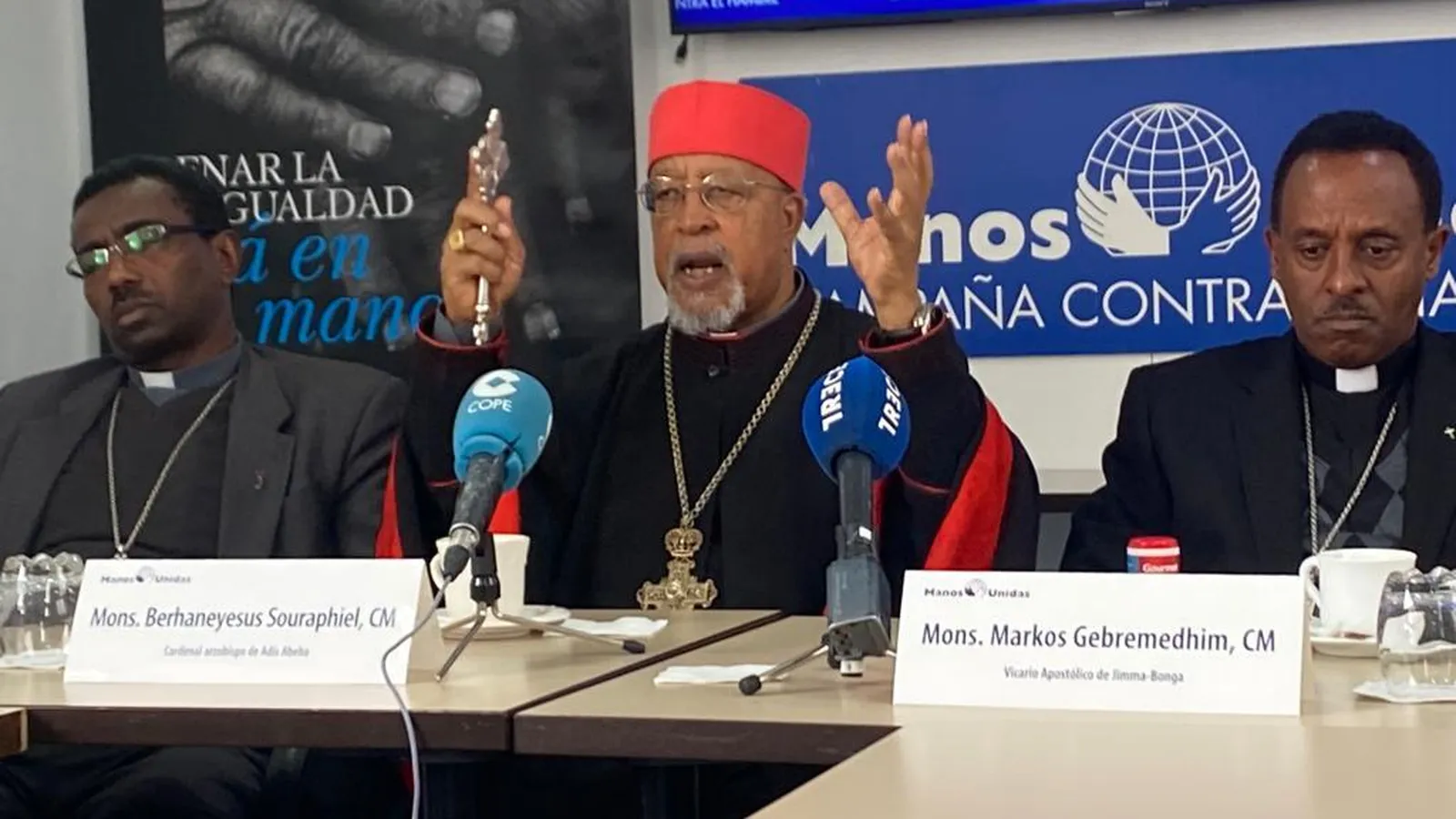 Esta mañana, en la sede de Manos Unidas de Madrid, se dieron cita el cardenal de Adis Abeba y presidente de la Conferencia Episcopal, Berhan D. Souraphiel; Lisane-Christos Matheos Semahun, Eparca de Bahar-Dar; Seyoum Franso Noel, Vicario Apostólico de Hossana; y Markos Gebremedhin, CM, Vicario Apostólico de Jimma-Bonga. Cuatro de las diócesis donde Manos Unidas lleva cabo proyectos de desarrollo rural y educación, apoyo a las víctimas de la guerra en el Tigray.