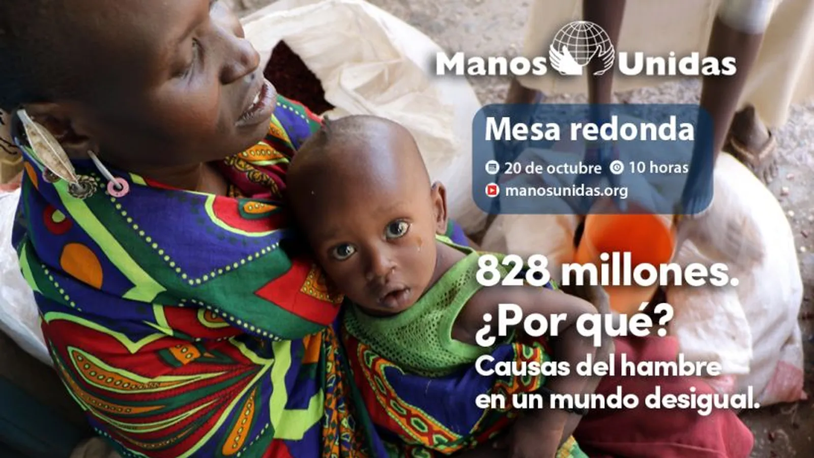 Manos Unidas convoca el próximo 20 de octubre, a las 10:00, una mesa redonda en la Asociación de la Prensa de Madrid para analizar y denunciar las causas del aumento del hambre en el mundo, que alcanza ya a 828 millones de personas según los últimos datos de Naciones Unidas