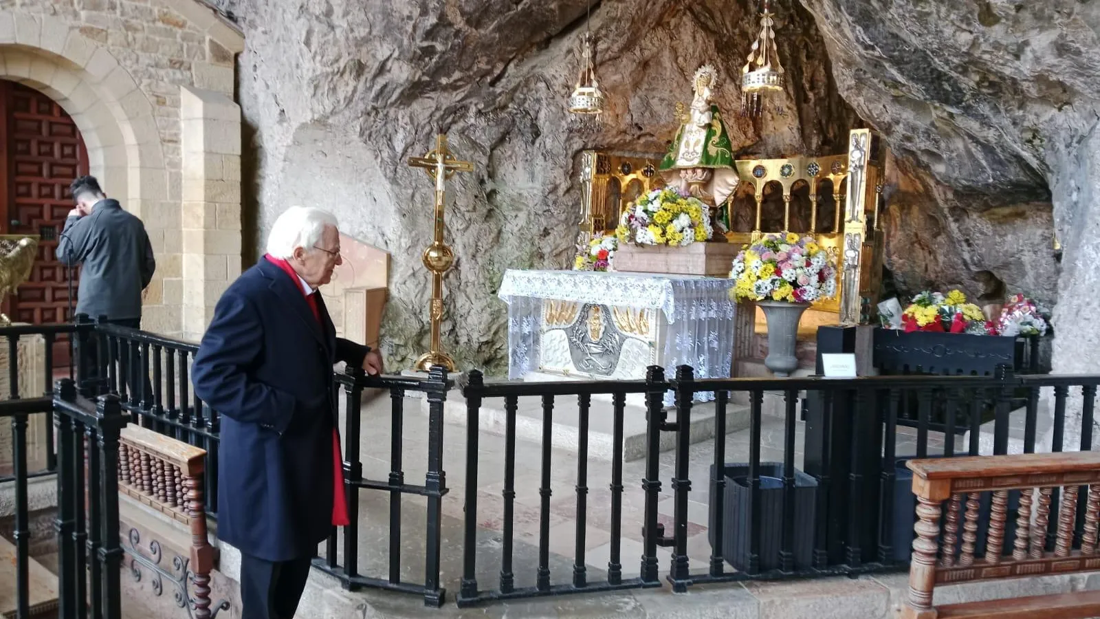 El padre Ángel reza ante la Santina por la salud del Papa: "Aún le quedan muchas cosas por hacer"