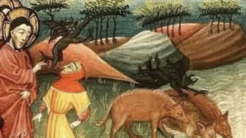 Sólo ahora nos dice Marcos que Jesús ya había empezado a hablarle y a decirle: "¡Sal, espíritu inmundo, de este hombre!". ¡El endemoniado le pedía a Jesús que no lo atormentara! Al contrario, le suplicó insistentemente, admitiendo que no era un solo espíritu inmundo, sino muchos. Ante la inflexibilidad de Jesús, entran en una súplica diplomática. Le ruegan: 'Envíanos a esos cerdos, para que entremos en ellos'. Jesús no tiene nada en contra. Y los espíritus inmundos, habiendo salido del hombre, entran en los cerdos y la piara se precipita inmediatamente por el acantilado al mar; eran unos dos mil y todos se ahogaron. La imagen de dos mil cerdos despeñándose por un acantilado es impactante, de película. Los espíritus inmundos hundiéndose.