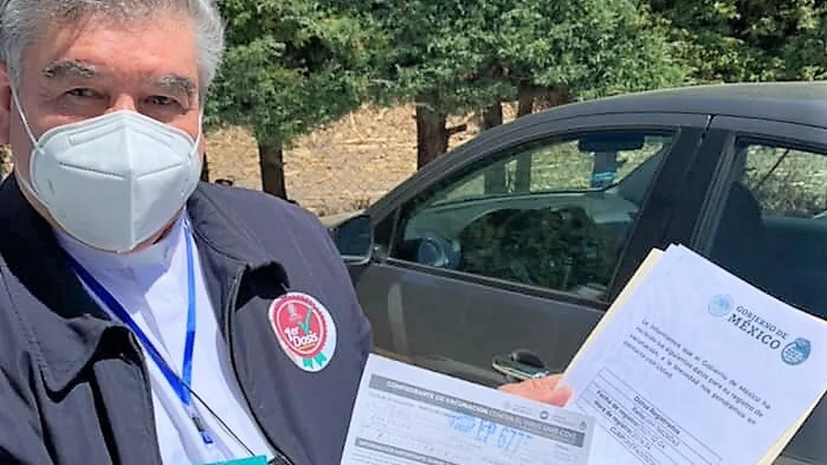 Con el mensaje, el obispo, de 69 años, acompaña una foto donde muestra a seguidores la constancia de inmunización que servirá para la aplicación de la segunda dosis.
