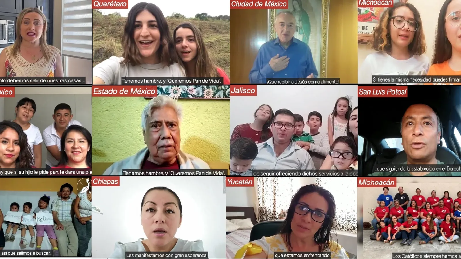A la par, un video difunde los objetivos de la campaña. Laicos y familias enteras de los Estados de México, Jalisco, Nuevo León, Sonora, Michoacán, Guanajuato, Veracruz, Ciudad de México, Chihuahua, Querétaro, Sinaloa y Colima, se dirigen al Episcopado Mexicano en lo que, según, no es un signo de desobediencia o insubordinación; por el contrario, quienes ofrecen su testimonio quieren proyectar que la dispensa de los signos sensibles debe ser real y no virtual o meramente simbólica y espiritual, especialmente de los sacramentos de la eucaristía y reconciliación y “con mayor razón en este tiempo de dificultad”.