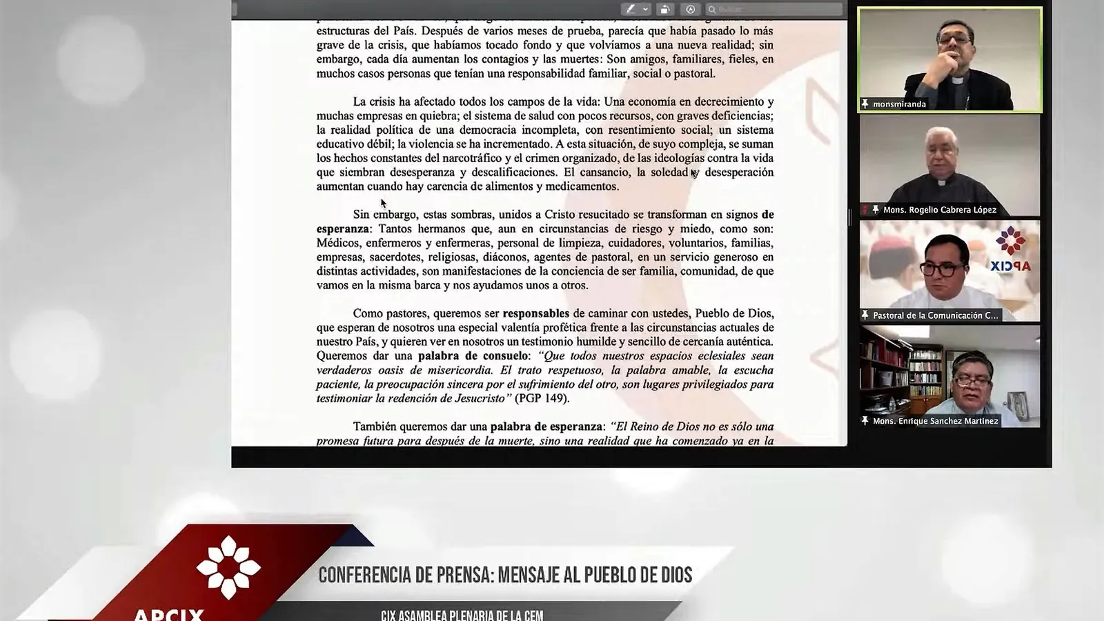 Los obispos mexicanos, con abrazo fraterno nos dirigimos al Pueblo de Dios que peregrina en esta Nación mexicana en medio de una crisis profunda, acentuada por la pandemia del COVID-19, que llegó de manera inesperada, mostrando la fragilidad de las estructuras del País. Después de varios meses de prueba, parecía que había pasado lo más grave de la crisis, que habíamos tocado fondo y que volvíamos a una nueva realidad; sin embargo, cada día aumentan los contagios y las muertes: Son amigos, familiares, fieles, en muchos casos personas que tenían una responsabilidad familiar, social o pastoral.