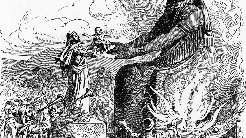 Moloch, en los tiempos bíblicos, fue un dios de los fenicios o cananeos, lo consideraban el símbolo del fuego purificante que a su vez significaba el espíritu. Creían que, debido a una catástrofe al comienzo de los tiempos, ese espíritu se había convertido en oscuridad al hacerse materia. El hombre era la encarnación de tal tragedia y para redimirse de ese pecado era preciso ofrecer sacrificios a Moloch inmolando a bebés por ser considerados los más impregnados de materia.