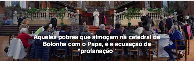 E agora vem o de sempre. Os que são mais papistas do que o Papa acharam um `escândalo´ esse almoço dos pobres dentro da catedral... Onde se viu profanar o lugar com um almoço? Esses tradicionalistas enrustidos esquecem de que a Eucaristia é também uma ceia fraterna. Provavelmente, muitos daqueles comensais entraram na catedral por primeira vez... e ficaram encantados!