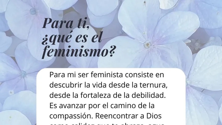 Para mi ser feminista consiste en descubrir la vida desde la ternura, desde la fortaleza de la debilidad. Es avanzar por el camino de la compassión. Reencontrar a Dios como calidez que te abraza, agua viva que te da corage y entereza.