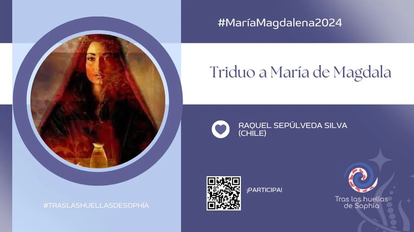 Agradecida de tu presencia en nuestros días, damos gracias a la luz por traerte al mundo y ser ejemplo femenino de cuanto podemos realizar en bien de aquellos a quienes anunciamos la vida en plenitud. Otórganos, Jesús resucitado la fuerza de la vida y el don del amor, para que cada día sea siembra de una buena y nueva cosecha en medio de María de Magdala, su valentía y consecuencia. Contigo vamos caminando en la evangelización. Amén