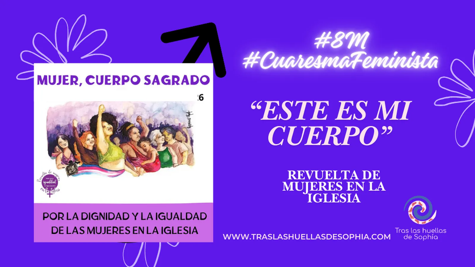 La Revuelta de las mujeres en la Iglesia, hasta que la igualdad, la justicia y el cuidado de la casa común se hagan costumbre. Somos laicas, somos monjas, somos cristianas. Y somos críticas. Es hora de que la palabra de las mujeres sea escuchada y tenida en cuenta. Porque en la Iglesia la palabra no es propiedad privada, sino pan compartido desde la fraternidad y el servicio. Queremos elevar nuestra voz afirmando que nuestra espiritualidad es inseparable de nuestro cuerpo, es por ello que queremos visibilizar una frase muy motivadora para nosotras: “ESTE ES MI CUERPO”.