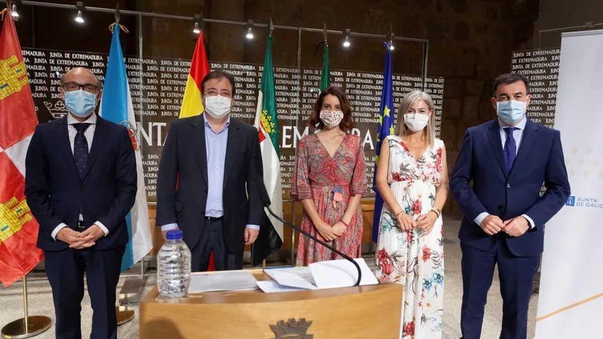 Los consejeros de Castilla y León, Javier Ortega; Galicia, Román Rodríguez; Andalucía, Patricia del Pozo; y Extremadura, Nuria Flores, al igual que Fernández Vara, han destacado la riqueza cultural, histórica, patrimonial, gastronómica, espiritual y medioambiental de esta ruta.