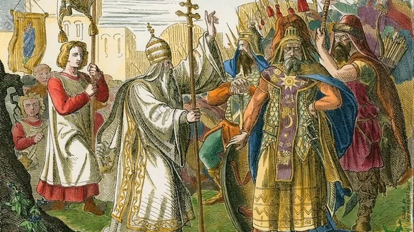 Quedaba por resolver el gravísimo asunto de la amenaza que, tanto por el Norte como por el Sur, se cernía sobre Roma y que afectaba como es natural a todo el orbe católico. Atila, el azote de Dios, estaba oteando la presa. Había traspasado el Rin y una vez atravesados los Alpes había llegado a Mantua, donde fijó el cuartel general a la espera de abalanzarse sobre Roma, donde la gente estaba aterrorizada e indefensa, ya que nadie quería asumir el riesgo de enfrentarse a un enemigo tan poderoso. Las miradas se fijan en León, que aunque no tiene espada tiene un espíritu inquebrantable. ¿Podría hacer algo este valeroso Pastor? Vestido de pontifical, con el anillo y el báculo, se presenta en la tienda donde se aloja el temible caudillo, a pecho descubierto, le habla, le explica, le ruega y Atila acaba cediendo ante la fuerza de sus palabras persuasivas. Las tropas de Atila no invadirían Roma por obra y gracia de la intervención de este gran hombre, que con todo merecimiento se había ganado el título de “Papa de la romanización”, pero esto no iba a ser todo, quedaba un episodio más en la vida de este coloso.