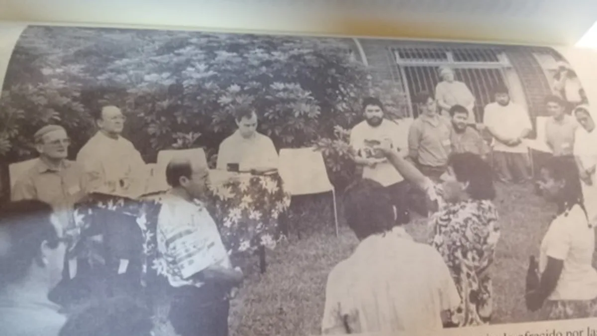 Para decirlo sin rodeos: El joven misionero Robert Prevost efectivamente participó en este congreso sobre ecología y teología en 1995 y en el marco de una ceremonia a la Madre Tierra y se arrodillo.