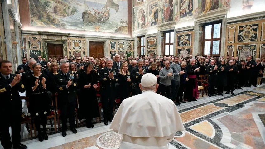 Francisco recibió a los militares italianos con la cúpula y los capellanes y ante ellos subrayó la urgencia del momento, marcado por "terribles conflictos", pero también por el progreso científico que nunca debe subordinarse "a intereses de poder o a usos perjudiciales, sino que debe orientarse siempre al bien integral del hombre, al desarrollo de todos los pueblos"