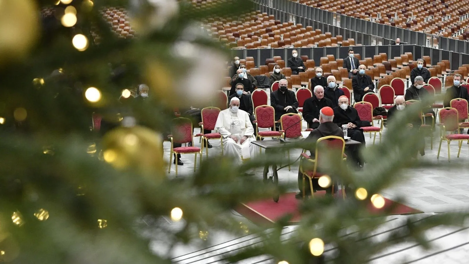 Ante la presencia del Santo Padre, el purpurado deseó feliz Navidad a todos los presentes recitando una oración a la Virgen del último canto del Paraíso de Dante Alighieri, en el séptimo centenario de su muerte