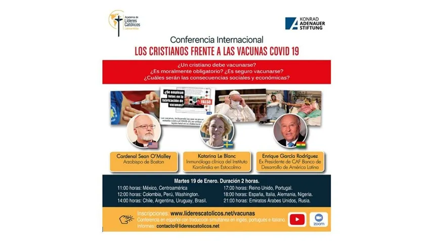 En el comunicado, el director general de la Academia de Líderes Católicos, el chileno José Antonio Rosas, señala que “es muy importante esta conferencia, pues están en juego miles de vidas. Si las personas no se vacunan, ponen en riesgo no solo sus vidas sino las de sus familiares; y de éste modo, jamás podremos salir de esta tremenda crisis que vive la humanidad. Por este motivo, es que estamos convencidos que un cristiano tiene la obligación moral de promover la vacunación y aclarar muchas de las fake-news y absurdas teorías que circulan en las redes sociales. ¡Qué mejor que hacerlo de la mano de uno de los pastores de la Iglesia Católica con mayor prestigio mundial, una científica sueca reconocida internacionalmente por sus investigaciones y uno de los dirigentes latinoamericanos en el ámbito económico más importante de los últimos años!”.