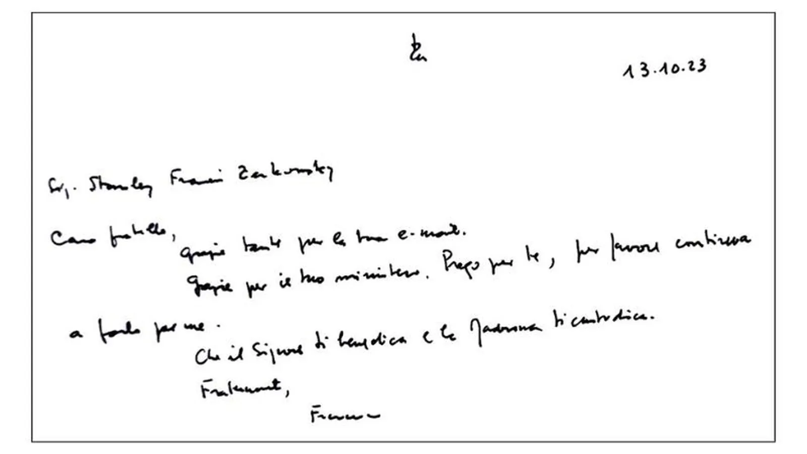 Cuatro frases escritas a mano en italiano y acompañadas de una traducción al inglés. Esa era la nota personal que el papa Francisco envió al activista estadounidense LGBTQ+ Stan Zerkowski, agradeciéndole el mensaje que éste le había previamente enviado en donde le contaba sus experiencias pastorales con este colectivo.