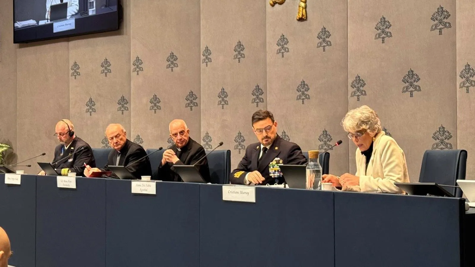 Intervinieron, además del Pro Prefecto, el almirante de división y jefe del Estado Mayor Fabio Agostini, el teniente coronel Ozren Lukenda, de la Armada croata y Monseñor Sergio Siddi, Vicario General del Ordinariato Militar en Italia