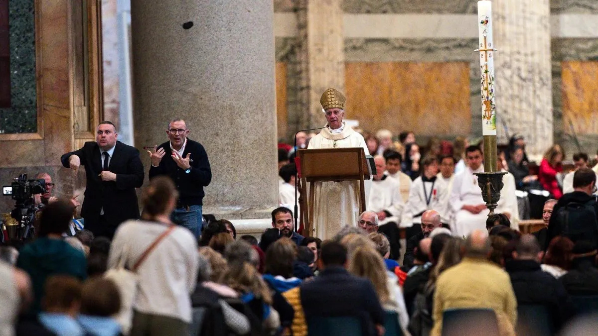 En la basílica de San Pablo Extramuros, el arzobispo, antiguo pro-prefecto del Dicasterio para la Evangelización, preside la misa entre representaciones humanas del Evangelio y cantos en Lis