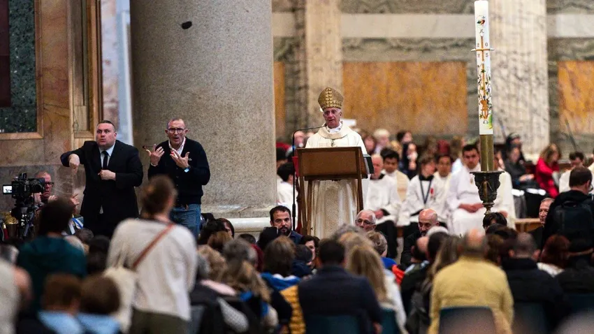 En los ritos introductorios, monseñor Fisichella confía a la comunidad una oración intensa: que la semilla sembrada por el papa Francisco, en su pontificado de misericordia e inclusión, florezca y «permanezca en la Iglesia». Durante la homilía, la Palabra se hace aún más concreta: el prelado recuerda el pasaje de los Hechos de los Apóstoles en el que Pedro y Juan curan a un paralítico, sin «oro ni plata», sino sólo en nombre de Jesús. Un milagro no de riqueza, sino de restitución: dar «autonomía», dignidad, la fuerza para levantarse de nuevo. La primera comunidad eclesial, en sus oraciones, responde a este gesto sin pedir privilegios, sino, más bien, el valor de «no callar», subraya Fisichella.