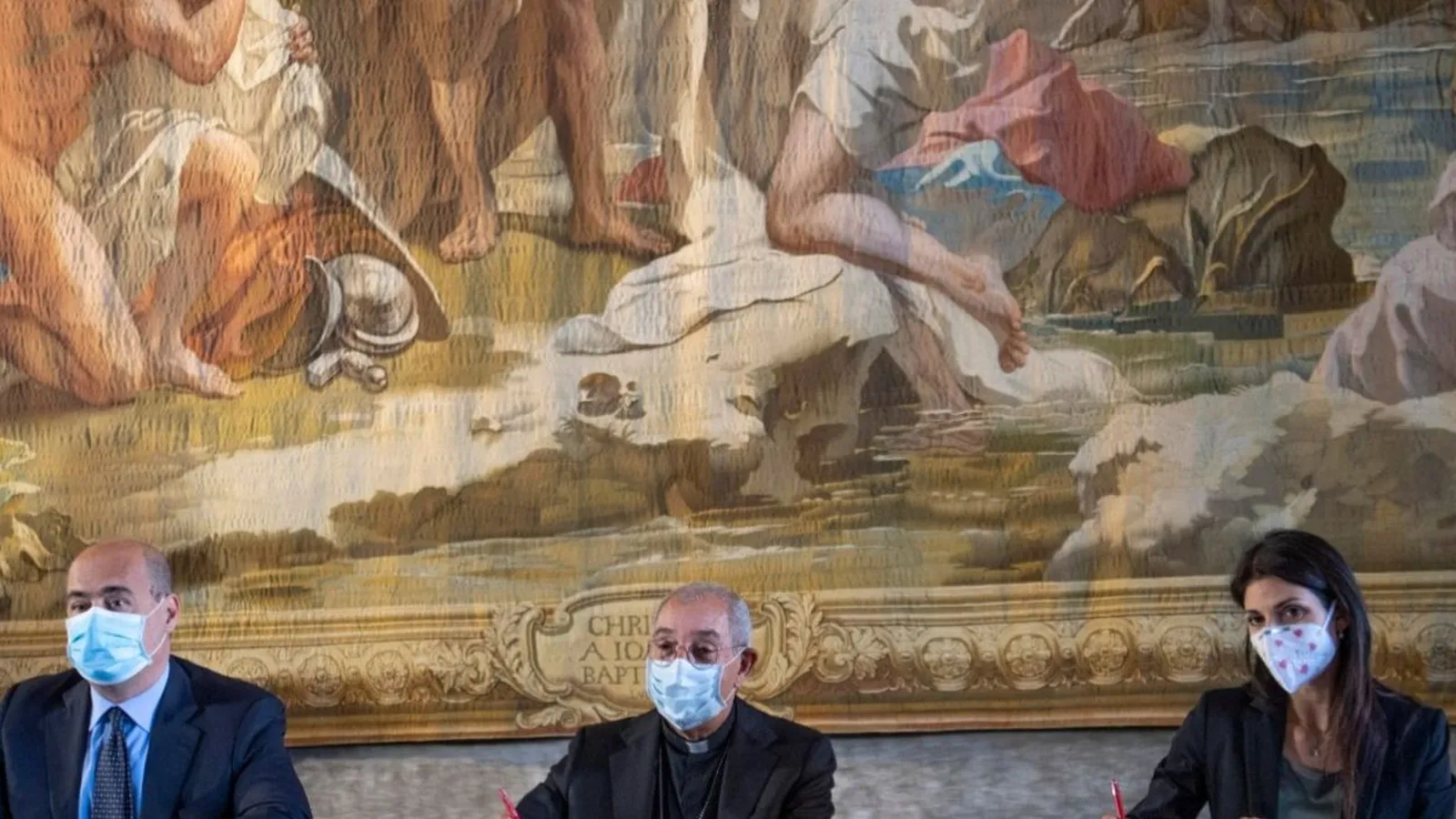 En el acto firmaron esta alianza el Cardenal Vicario Angelo De Donatis, el Presidente de la región del Lacio, Nicola Zingaretti y la alcaldesa de Roma, Virginia Raggi