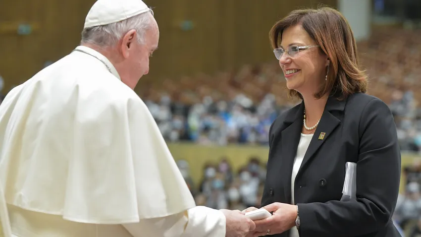 Francesca Di Maolo es la presidenta del Instituto Seráfico de Asís, que el año pasado celebró el 150 aniversario de su fundación, motivo por el cual una representación de niños y padres, médicos, operarios, voluntarios, simpatizantes, padres rogacionistas y monjas elisabetinas, junto con el obispo Domenico Sorrentino y los frailes franciscanos del Sacro Convento, fueron recibidos en audiencia por Francisco.