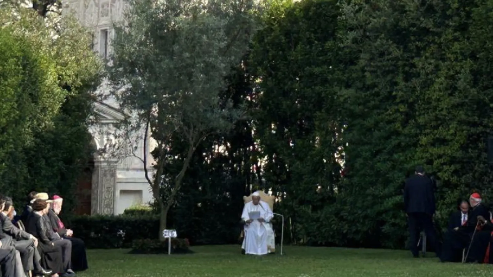 Igual que hace diez años, el Papa mostró su deseo de renovar la oración de todos por la paz, y, ante el el árbol que juntos plantaron aquel día, pidió a Dios "que continúe haciendo crecer el olivo que aquel día plantamos; ya se ha vuelto fuerte y frondoso, porque estuvo al reparo de los vientos y fue regado con cuidado. Del mismo modo, debemos pedir a Dios que la paz pueda brotar en el corazón de cada hombre, de cada pueblo y nación, en todo rincón de la tierra, al abrigo de los vientos de guerra e irrigado por quienes cada día se comprometen a vivir en la fraternidad".