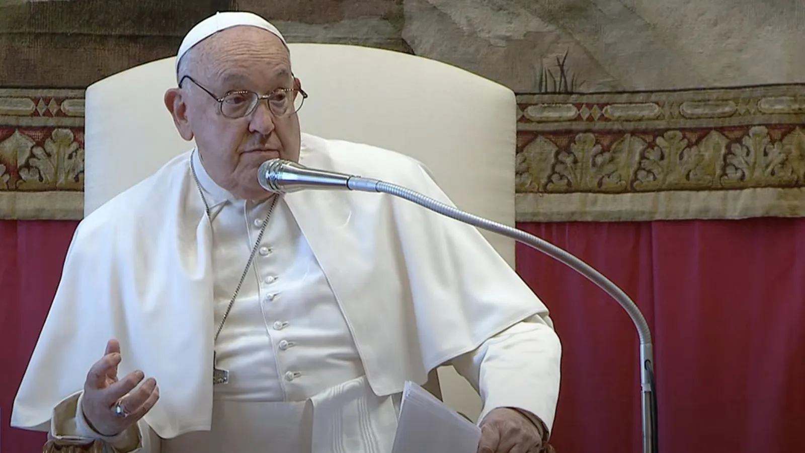 "Ayer no dejaron entrar al Patriarca en Gaza, como habían prometido", Pijo el pontífice en referencia a Pizzaballa ante los cardenales y otros religiosos presentes en la audiencia, al referirse a la situación en Tierra Santa.
