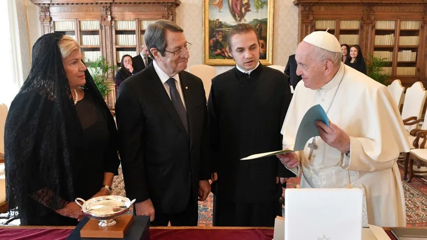 Francisco había recibido por primera vez al presidente chipriota en el Vaticano en noviembre de 2019. El 2 de diciembre de 2021, ambos se reunieron en privado en el Palacio Presidencial de Nicosia, en el marco del viaje del Papa a Chipre y Grecia.