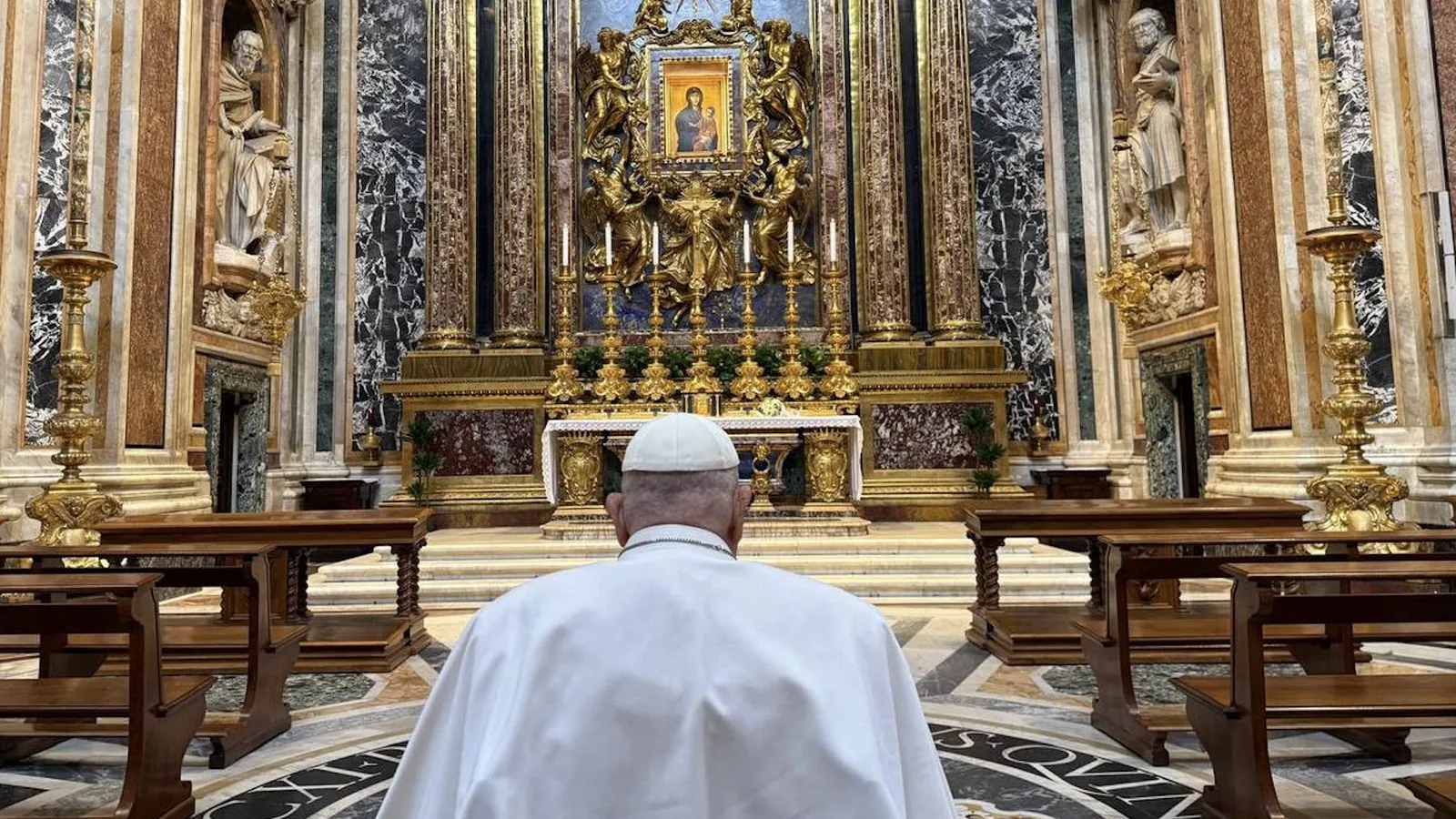 El Pontífice, de 88 años, que se presentó en silla de ruedas, sin las cánulas nasales y vestido de blanco, con el hábito papal, es muy devoto del icono 'Salus Populi Romani, que visita siempre después de sus viajes, como hizo también el pasado 23 de marzo, cuando salió del hospital y, por sorpresa, la comitiva en la que se desplazaba el pontífice se desvió de su camino para llegar a Santa María la Mayor.