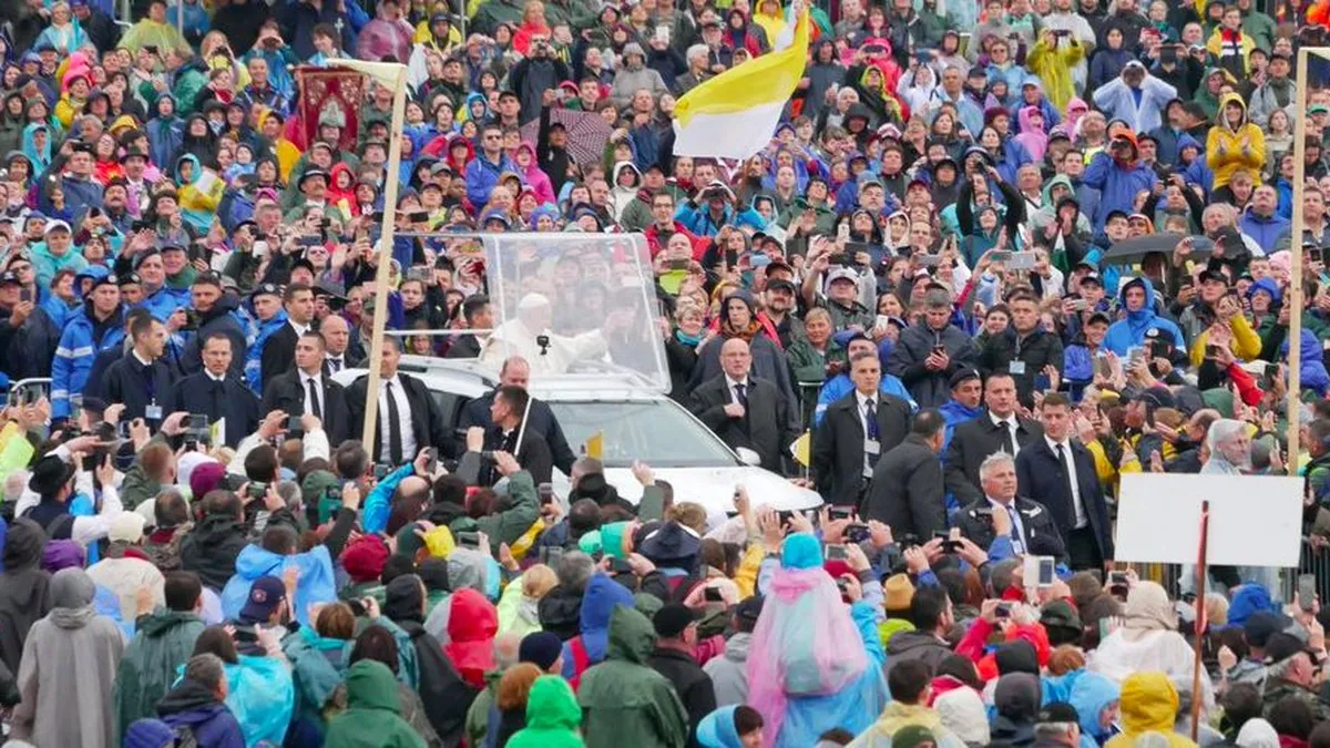 En Transilvania, la tierra de Drácula, Bergoglio hizo un llamado a la unidad en la diversidad, para "tejer juntos el futuro". Más de 150.000 personas esperaban, bajo una lluvia intermitente, la llegada de Bergoglio. El Papa no defraudó en el valle santo. Un impresionante escenario natural, rodeado por el bosque y donde la espiritualidad se vive de una forma distinta. El Papa tuvo verdaderos problemas para llegar al altar, pues el camino desde la improvisada sacristía estaba repleto de barro.