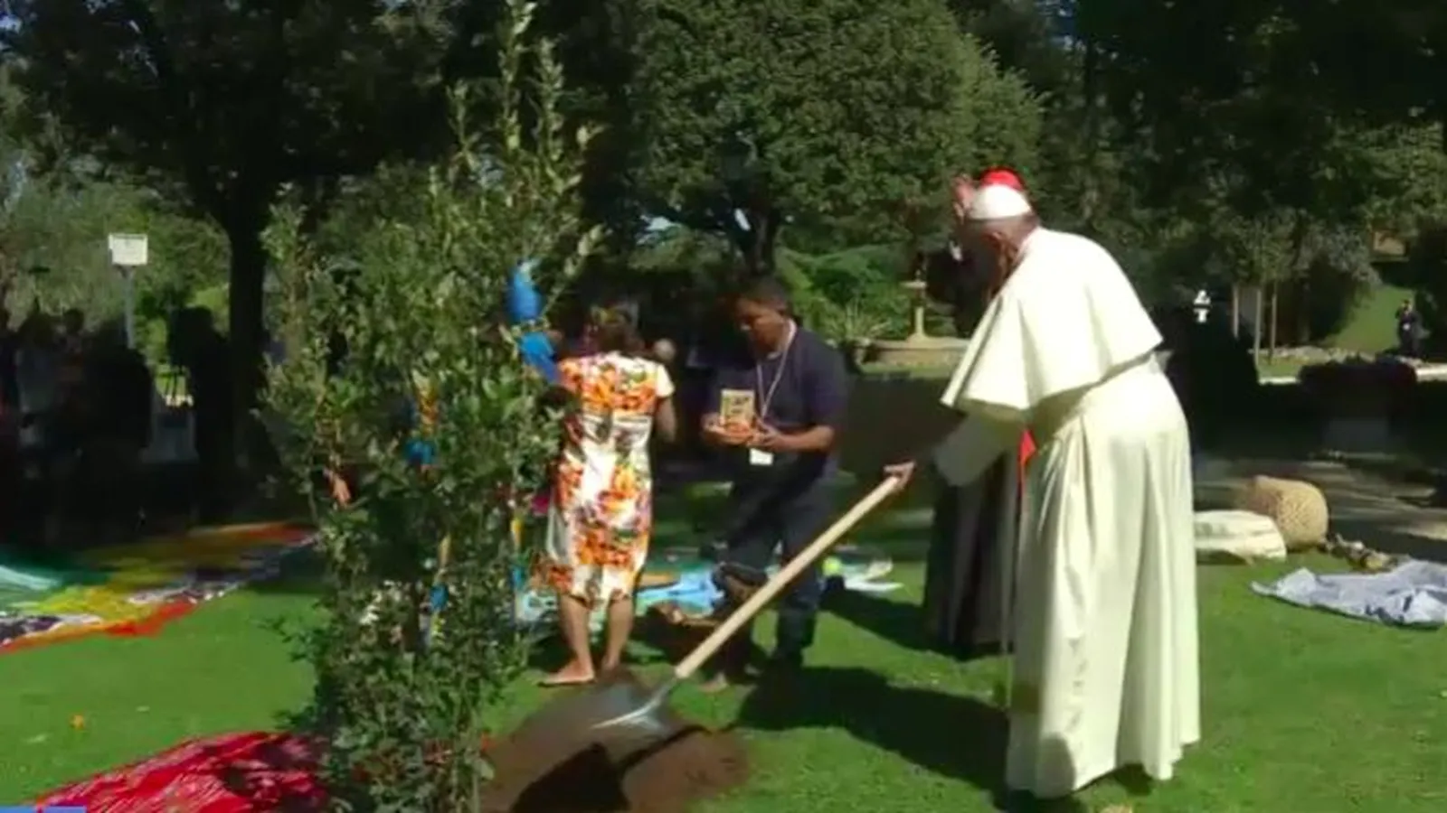 Planta una encina en los Jardines Vaticanos tras una oración dirigida por una mujer indígena