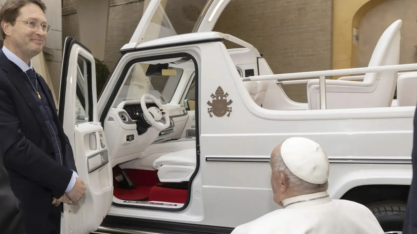 El presidente de la Federación Automóvil Club de Italia entrega una insignia al Papa