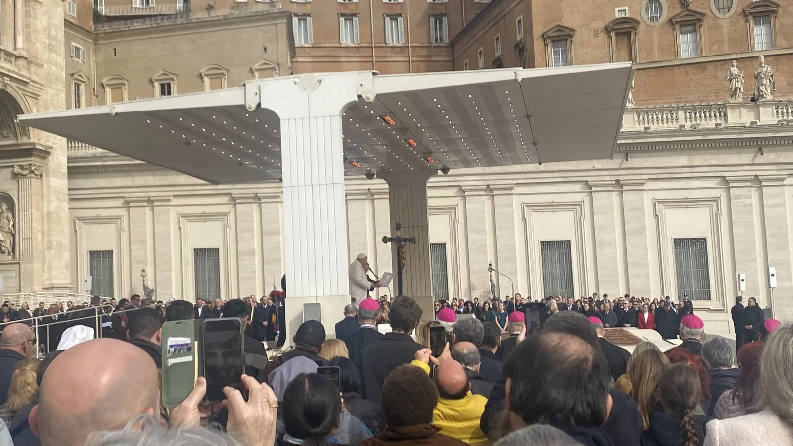 Tras recibir a Religión Digital, el Padre Ángel y sor Lucía en el Vaticano, en un encuentro en el que se le entregó una carpeta con las adhesiones a la campaña de apoyo al pontífice, Francisco volvió a encontrarse con los fieles en la plaza vaticana, aunque -aún en recuperación de la gripe, pidió nuevamente a un colaborador que lea la catequesis semanal.