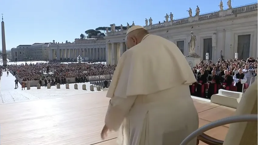 El Papa se inclina ante los fieles que le esperan para la catequesis | Captura