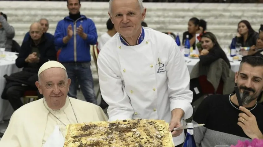 Tras el rezo del ángelus, el papa Francisco compartió el almuerzo en el Aula Pablo VI con alrededor de 1.300 personas sin hogar, inmigrantes y personas asistidas por Cáritas Roma, la Comunidad de Sant'Egidio y otras asociaciones.