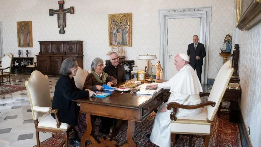 El Papa recibió a la presidente de la Umofc, María Lía Zervino; a la secretaria general interina, Andrea Ezcurra, ambas Servidoras, junto con el asistente eclesiástico, padre Gerard Whelan SJ.