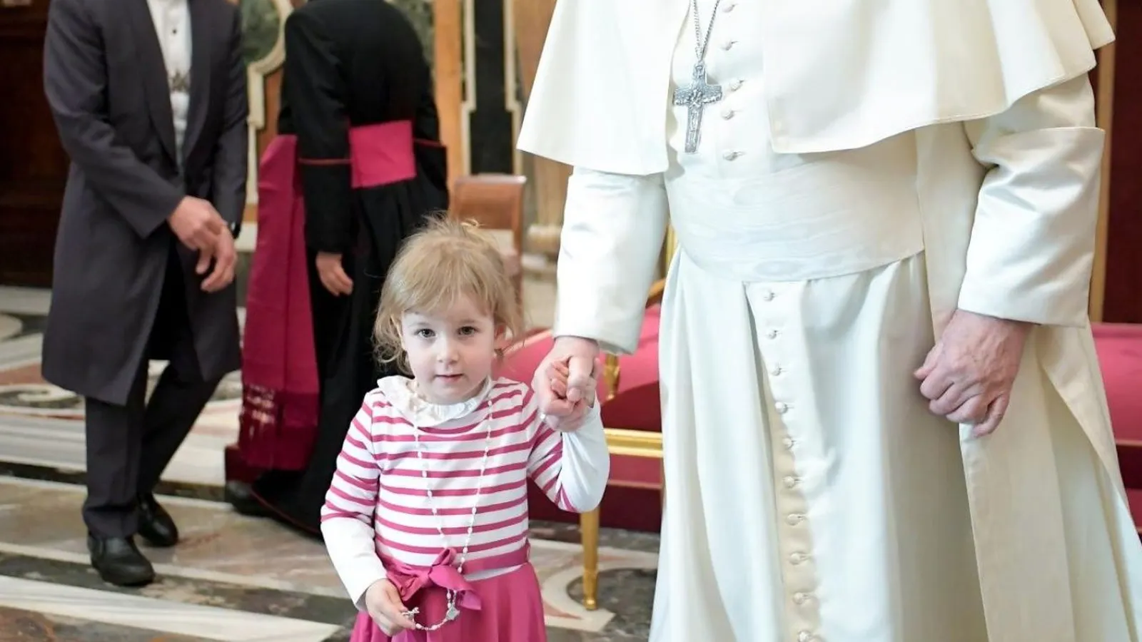 El Papa de la mano con una niña