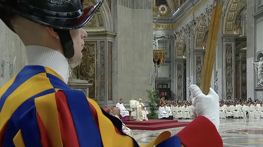 Ambiente español en la Basílica, con cantos en español y concelebrantes latinoamericanos, como los cardenales Prevost, Fernández, Sandri o Braz.
