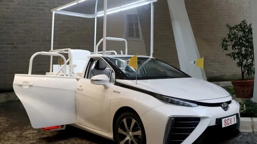 La flota de vehículos del Vaticano acaba de incorporar el primer modelo alimentado con hidrógeno. Se trata de un Toyota Mirai convertido en papamóvil.
