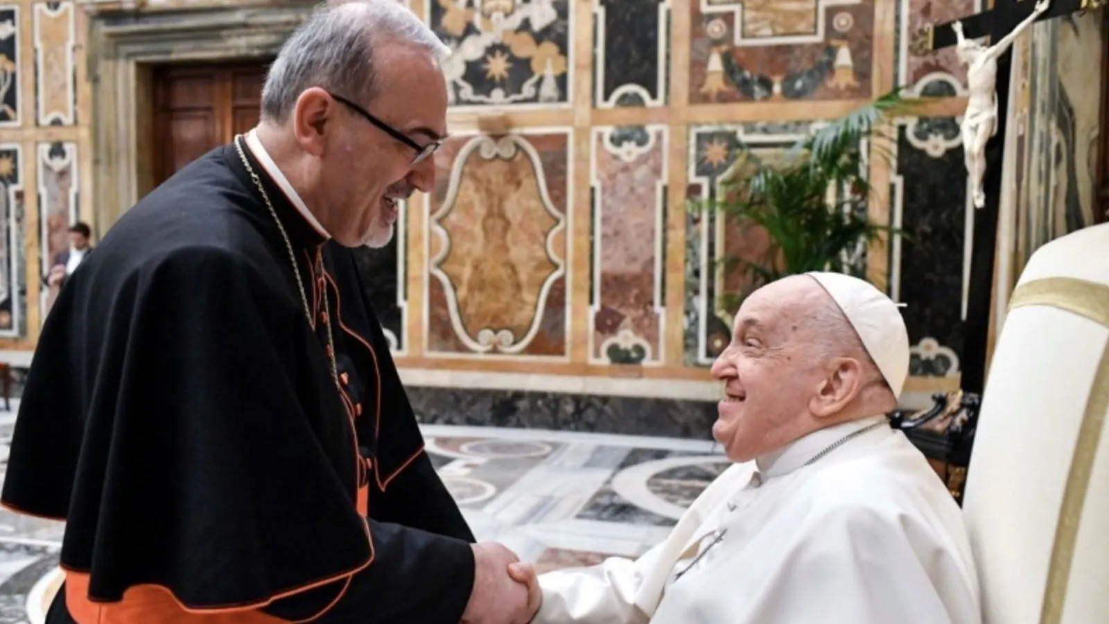 Antes de concluir su alocución el Pontífice afirmó que “la situación actual de Tierra Santa y de los pueblos que la habitan nos implica y nos duele. Es muy grave desde todos los puntos de vista. Es muy grave. He escuchado al padre Faltas, las cosas que me ha mostrado, y cada día me comunico con la parroquia de Gaza, que sufre tanto por esta situación”. Estos son sólo dos ejemplos, pero es más grande que eso. Esta situación es muy grave. Debemos rezar y actuar incansablemente para que esta tragedia termine. Que esto los impulse aún más a profundizar las razones y la calidad de su presencia en esos lugares martirizados, su presencia allí, en el martirio de ese pueblo, en el que están arraigadas las raíces de nuestra fe.