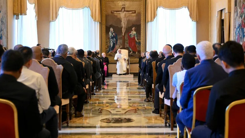 Francisco se reunió con los participantes en el capítulo general de la Congregación de los Sacerdotes del Sagrado Corazón, más conocidos como dehonianos, llamados así por el sacerdote francés Léon Gustave Dehon, que los fundó en las últimas décadas del siglo XIX.
