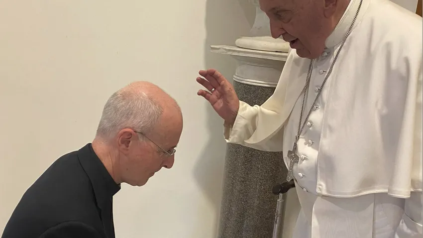 El jesuita James Martin, abanderado de la pastoral LGTBQ -y, por eso mismo, en la diana de los grupos más tradicionalistas que incluso boicotearon algunos encuentros presididos por él durante la Jornada Mundial de la Juventud de Lisboa, en agosto de 2023- posteó en X este martes, 12 de junio, una foto en la que se le ve recibiendo la bendición del Papa, y donde él, con ese texto, de alguna manera también 'bendice' a Francisco tras sus polémicas palabras sobre el mucho "mariconeo" tanto en los seminarios italianos como en el propio Vaticano.