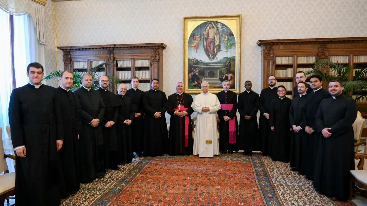 el Papa León XIV recibió en audiencia, este viernes 20 de junio, a los sacerdotes de la Pontificia Academia Eclesiástica que acaban de concluir la experiencia de Año Misionero