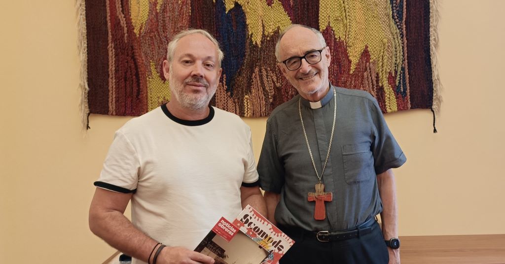 (Noticias Obreras).- Tras el saludo inicial, recuerdos y mensajes de amigas comunes, nos sentamos en la mesa de trabajo. Su vestimenta es la de un prelado sencillo. No espera grandes titulares, más bien reflexiones de fondo. Un estilo propio de quien transmite calma y sonríe. Solo la simbólica cruz de madera, con un clavo procedente de una barca, y su anillo del Vaticano II lo delatan como cardenal responsable del dicasterio que atiende el grito sufriente de las personas y de la casa común.