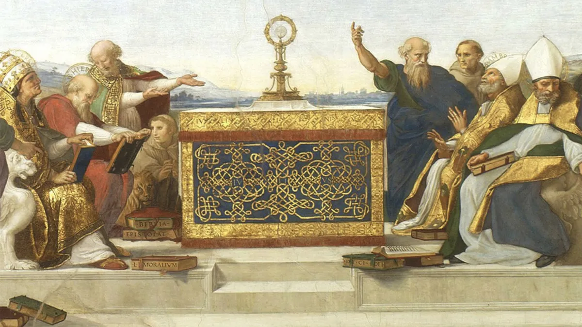 'La Adoración de la Custodia', de Rafael, donde se ve el debate entre Padres de la Iglesia