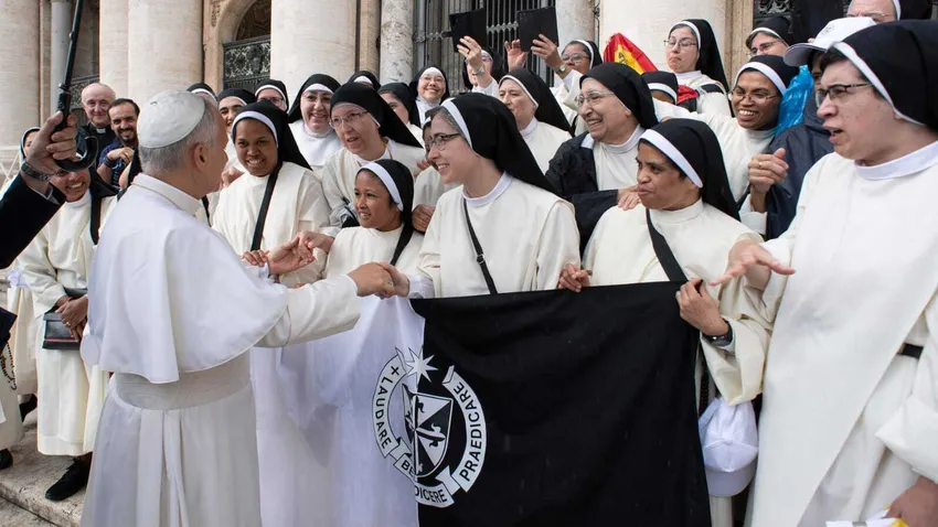Cerca de 40 monjas de la Confederación de Santa María y Santo Domingo viven en Roma un encuentro cercano con el Papa durante la audiencia general del Año Jubilar