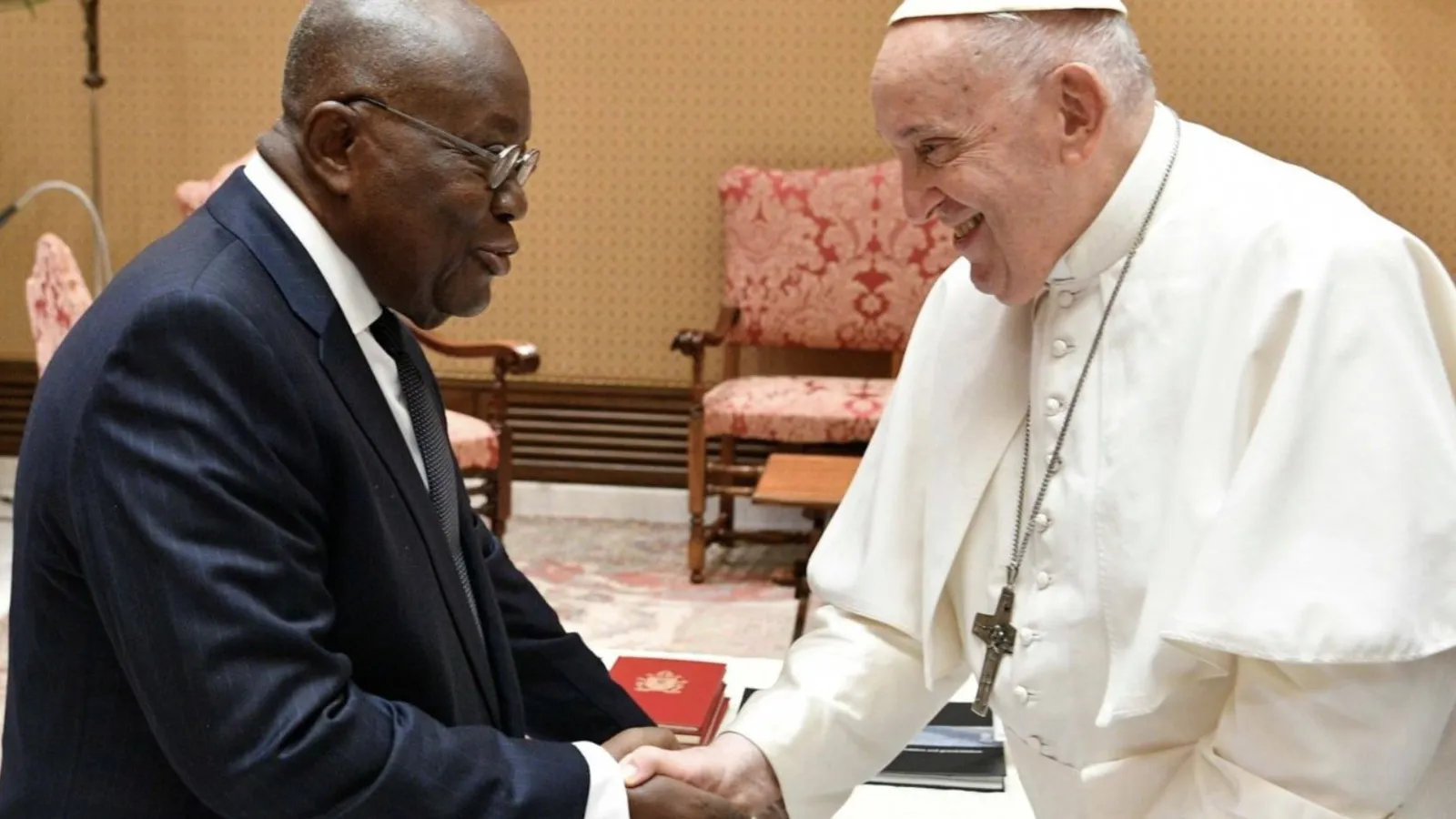 Nana Addo Akufo-Addo con el Pontífice durante unos 20 minutos