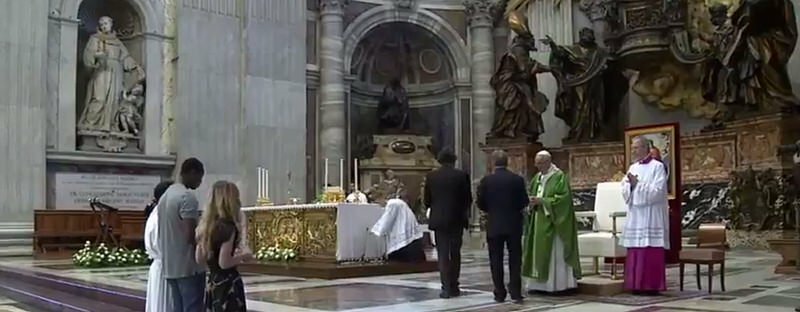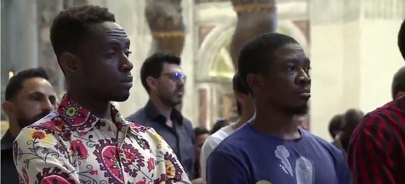 La capilla del Espíritu Santo de la basílica de San Pedro está llena de emigrantes, refugiados, exiliados, personas sin hogar, pobres, asi como las personas que los acogen y atienden. Entre ellos, los miembros de Open Arms, especialmente invitados por el Papa, acompañados por Sor Lucía Caram y por el Padre Ángel.