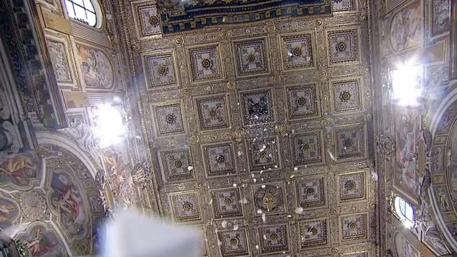 La “nevada”, ¿es solamente algo folclórico o tiene un valor simbólico? Depende de nosotros, de cómo la percibimos y del sentido que le damos. Todos sabemos que esta evoca el fenómeno prodigioso que le indicó al Papa Liberio el lugar donde construir la basílica antigua. Sin embargo, el hecho de que este signo se repita en la solemnidad de hoy, en el interior de la basílica y durante la liturgia, nos invita a una lectura más bien simbólica.